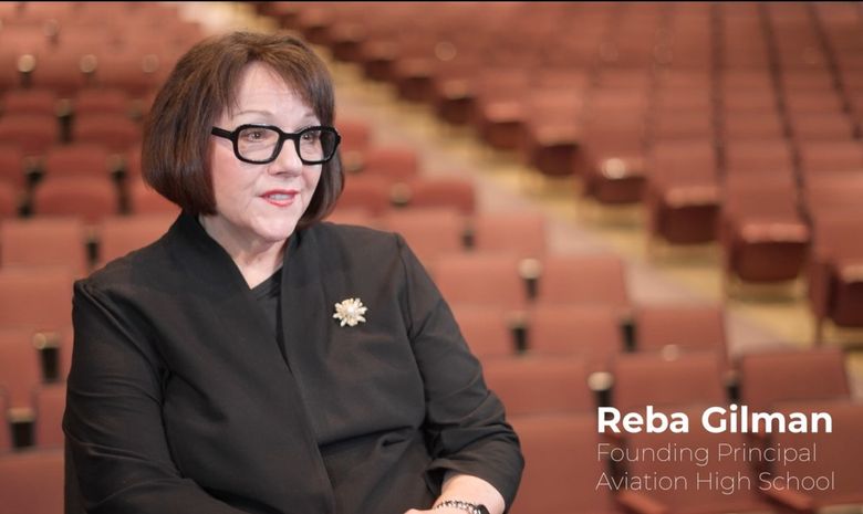 In the film, Reba Gilman, Aviation High School’s founding principal, recalls making a pitch for the school’s concept: a school focused on raising students’ science, technology, engineering and math skills by letting kids practice in aviation and aerospace.