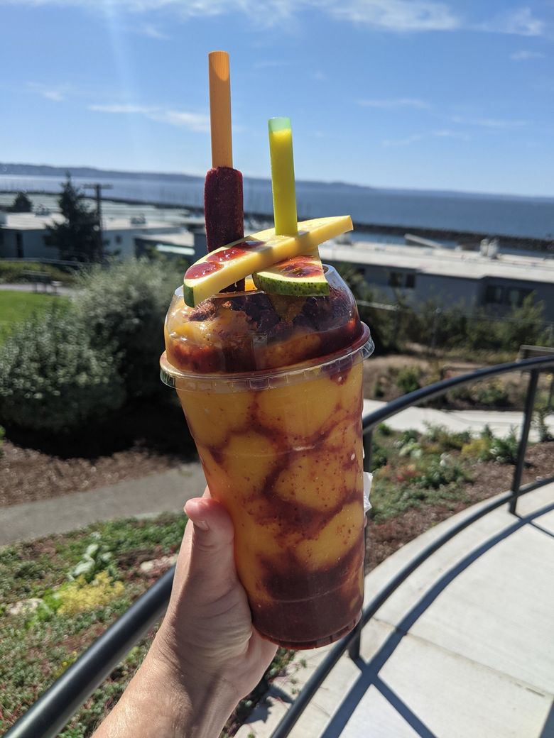 If you head this way, you’ll be close to Sweet D’Licias (22021 Seventh Ave. S.), a vibrant Mexican ice cream shop with lime-green walls. There’s fresh juices, passion fruit ice cream and, my absolute favorite, a mangoneada ($8.50). This refreshing 16-ounce drink combines the sweetness of pureed mango with the slightly spicy, sour tang of chamoy and Tajin. The brick-red chamoy is swirled throughout the drink, heaped on top and squirted in a row of three neat little dots atop a few slices of fresh mango that crown the drink (alongside a tamarind candy-coated straw). You know how sometimes you’ll eat a sour candy and it gives you that ache in the back of your jaw, but you love it? Be prepared for that to happen while guzzling this delectable drink. It’s infinitely refreshing — and with the two straws, it’s as if they are expecting you to share.
