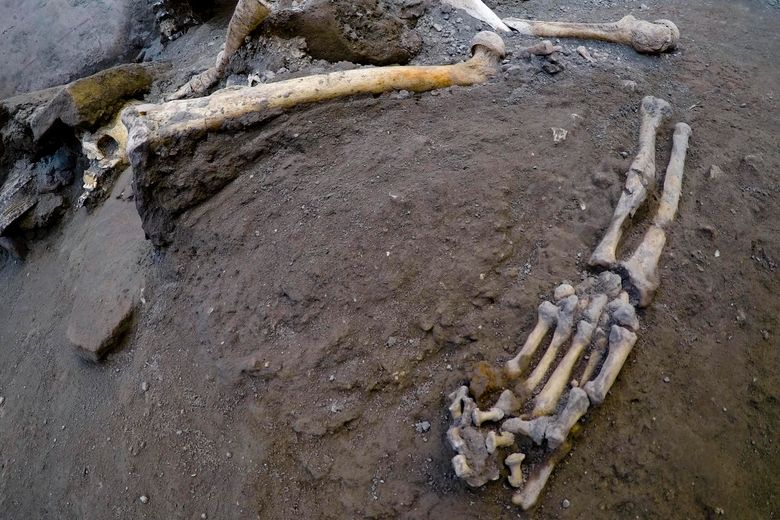 MILAN (AP) — Italian news agency ANSA says new excavations in the ancient buried city of Pompeii have yielded the undisturbed skeletons of people who took refuge from the eruption of Mount Vesuvius in A.D.79.