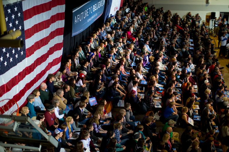 Sanders tells nearly 2,300 people at Luther College in Decorah, Iowa, that energy and enthusiasm are “with our campaign.”