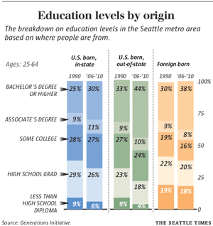So how do we both improve opportunity for our increasingly diverse homegrown population and retain well-educated in-migrants who have moved here for employment? We think the following actions might contribute to a new Seattle story:
