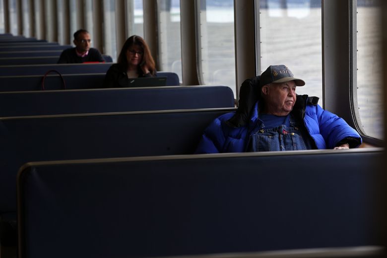 Each ferry run has its own delicate ecosystem, one not immediately evident to casual riders. On the 4:20 p.m. Bainbridge Island commuter run, for example, one section of the upper deck is designated the “Reading Room,” even if there’s very little signage or a heads-up to keep quiet and let them all bookworm in peace. Musicians stick to the outdoor areas, rain or shine, and that booth you slid into might usually be occupied by a crew of bike riders — they might not tell you that to your face, but they’ll most certainly give you their best Seattle cold shoulder.