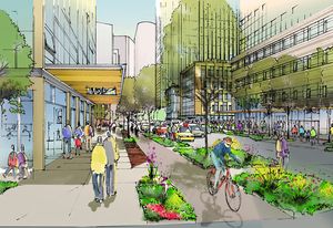 The scale of Amazon’s redevelopment will give planners an unusual opportunity to design the highest-quality cycle track, with 7-foot-wide riding paths and a line of trees to separate the cyclists from other traffic, said Dongho Chang, city traffic engineer for the Seattle Department of Transportation.
