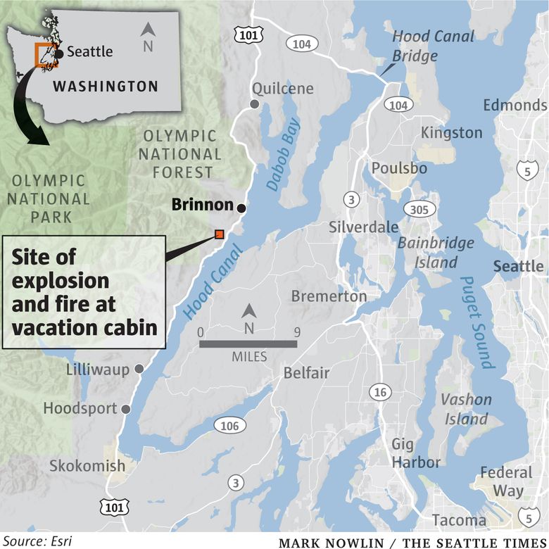 There was a propane tank on the property, Brinnon Fire Chief Tim Manly said. Investigators have not figured out whether the tank exploded first, causing the fire, or if there was a fire that caused the explosion, he added.