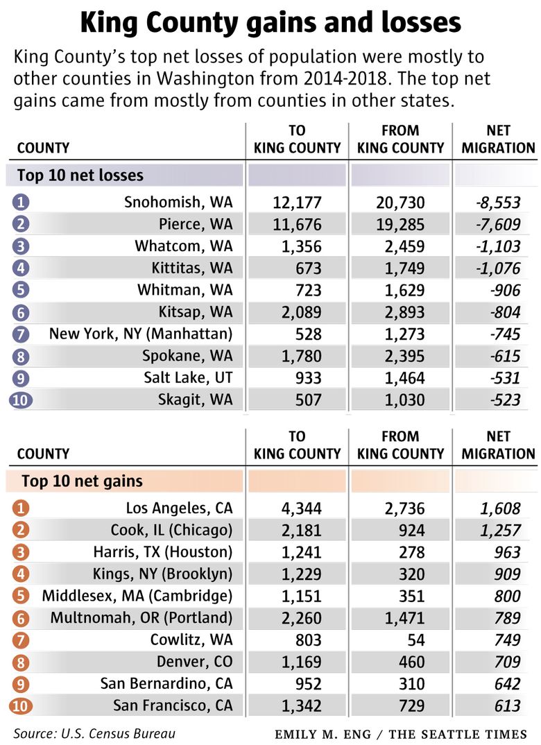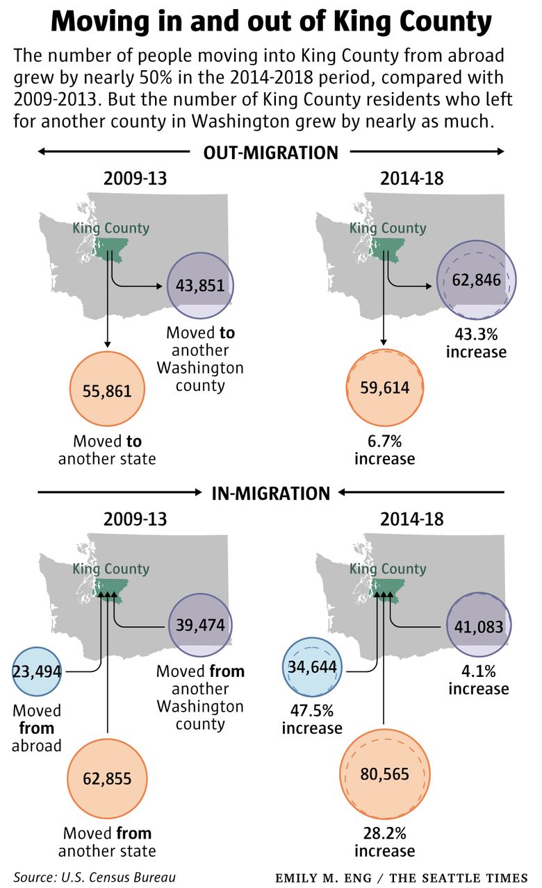 Correction: An earlier version of this column misstated the number of people who moved each year into King County from another county in Washington. The correct number is 41,100.