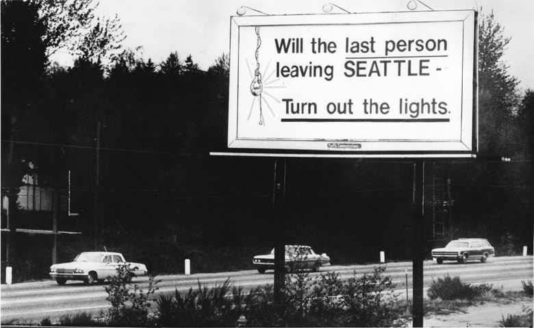 Here’s a twist on the iconic billboard from the “Boeing Bust” era of the 1970s: Will the last middle-class person leaving Seattle turn out the lights?
