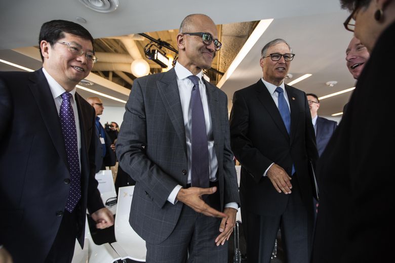 UW Interim President Ana Mari Cauce and Tsinghua President Qiu Yong made the announcement Thursday afternoon in downtown Bellevue, accompanied by Gov. Jay Inslee and Microsoft CEO Satya Nadella.