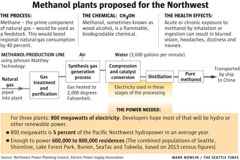But skeptics question whether Northwest hydropower — from 3 percent to as much as 5 percent of the region’s average annual output — should be dedicated to making liquid methanol that is shipped by tanker to China’s plastics industry.
