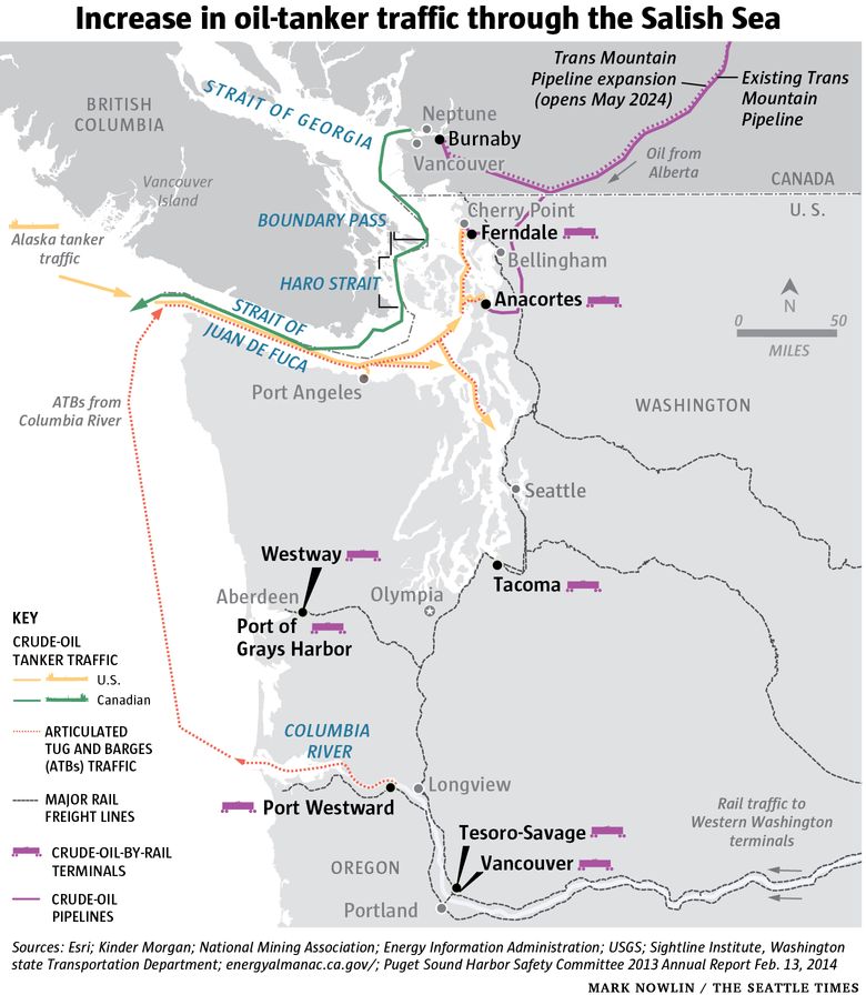 A significant increase in oil tanker traffic is in store for the Salish Sea with the completion of the Trans Mountain Pipeline expansion in British Columbia.
