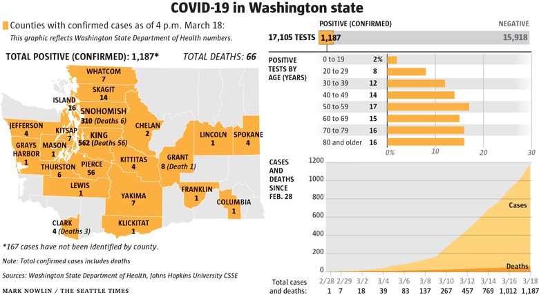 Officials have now confirmed that 1,187 people in Washington state have COVID-19, the disease caused by the novel coronavirus, and that 66 have died.