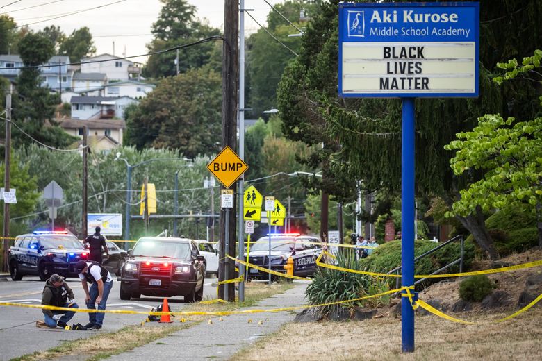 A 17-year-old boy suffered life-threatening injuries and a 14-year-old was in police custody after the two exchanged gunfire Thursday evening outside Aki Kurose Middle School in South Seattle, according to police.