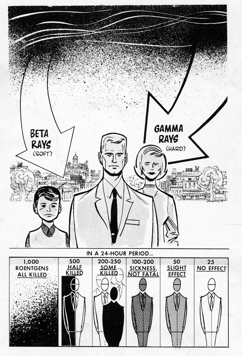 It tried hard to show how we could get past a doomsday scenario, although graphics like the one in Part 13 didn’t help. It showed a mom, dad and son bombarded by radiation, staring with “1,000 Roentgens ALL KILLED.”