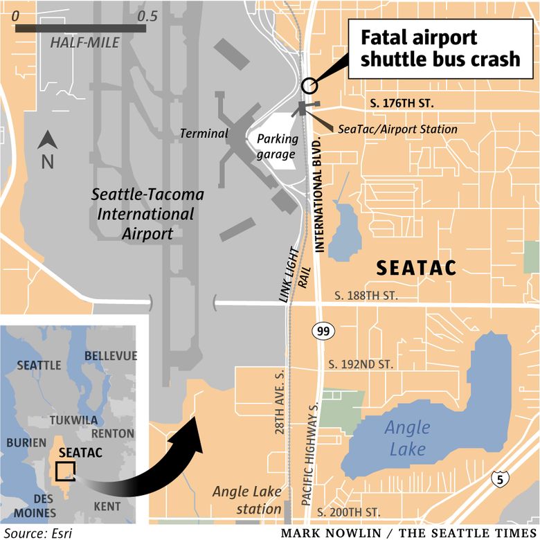 Authorities were investigating what caused the crash, which was reported about 1 p.m. on International Boulevard just north of South 176th Street, said Sgt. Cynthia Sampson of the King County Sheriff’s Office. Officials think the shuttle bus from the Seattle Airport Marriott was heading north and the car was heading south when it crossed the centerline.