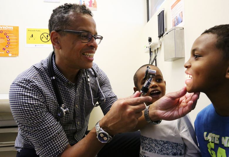 He did his residency at Seattle Children’s, where he still sees patients. And he celebrates his mother, who retired and became an artist, by hanging her paintings throughout the clinic.