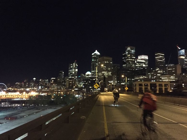 The group never has a set destination in mind for its weekly rides, the person said. “Last night, we were in West Seattle and it was like, now or never, and we got on the viaduct and rode north and it was great.”
