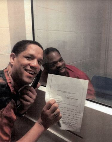 The document was prepared and passed through a glassed-off visitation partition to Jones for his signature, Kays said. The declaration was filed in court along with a photograph of Beauregard holding the document, with Jones on the other side of the glass partition. Both men are smiling.