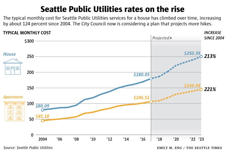 SPU customers are well acquainted with rate hikes, having seen the typical per-month utility cost for a house nearly double from $80.09 in 2004 to $156.99 in 2014.