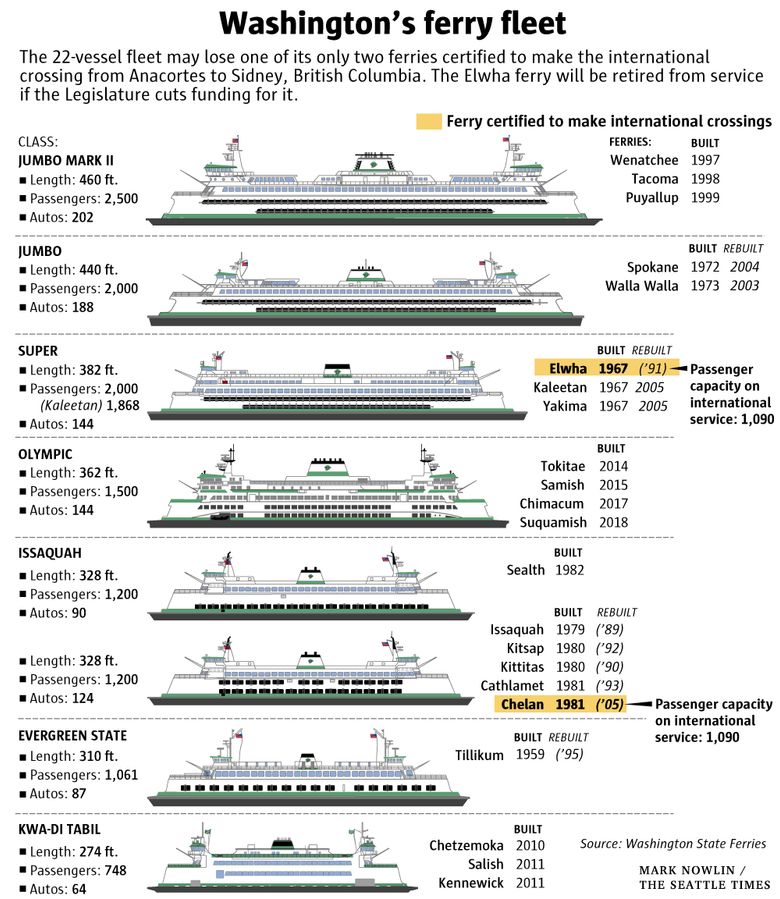 If the Elwha is retired, the only ferry certified to make the international crossing would be the Chelan.