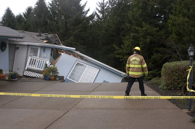 Crews evacuated three other homes and closed a road 2 miles east of Highway 101. Rain pounded the coast Thursday and Friday as it has for much of December.