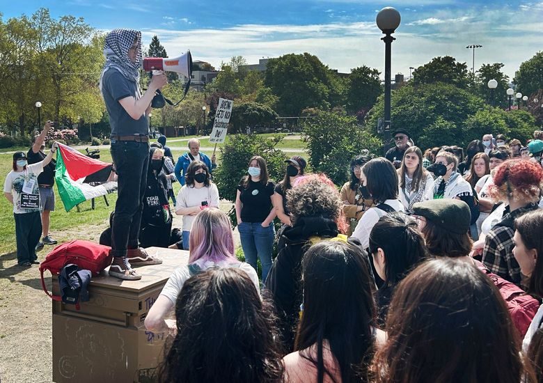 Students at schools in the Puget Sound region walked out of class Tuesday morning to protest Israel’s war against Hamas.