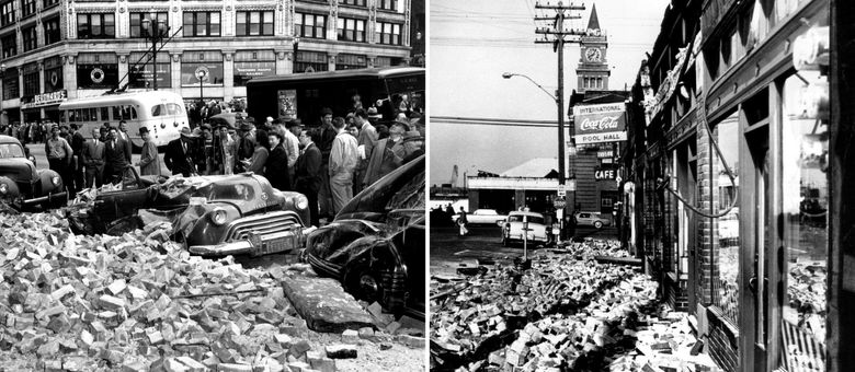 A milder quake struck the Puget Sound region in 1965. Falling bricks killed three people, one in downtown Seattle. “Unreinforced brick bearing wall buildings,” the USGS noted, “as usual, bore the brunt of the damage.”