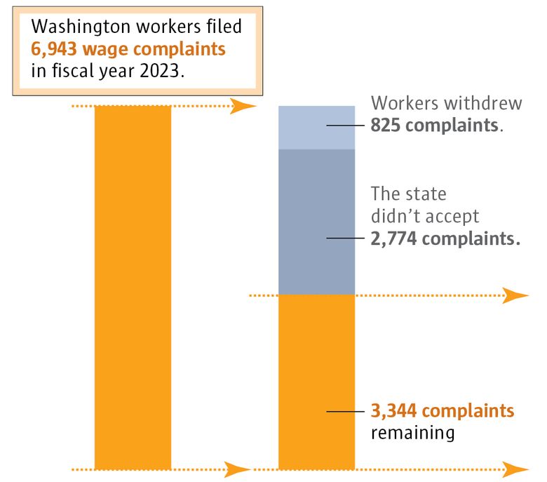 Inside the agency, the mandate to investigate every complaint means investigators juggle many cases at once. L&I employs 28 investigators focused on wage complaints, Templeton said, and last year the agency received 6,943 complaints — a workload that averaged almost 250 complaints per investigator.