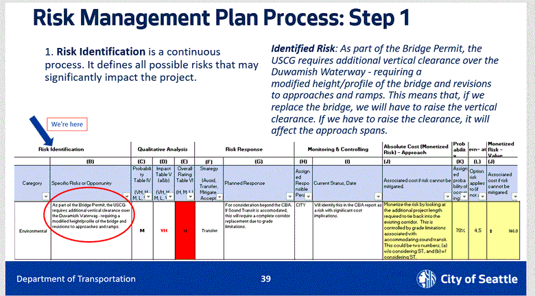 Marx emphasized the risk figures are still being refined, and any additional cost to build higher than 140 feet is only one criterion. SDOT’s top priority will be to assure public safety for any repair or replacement option, she said.