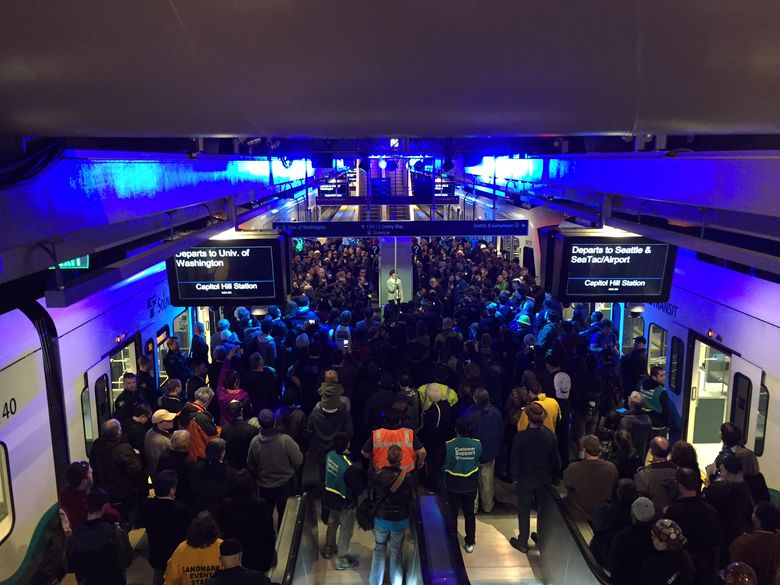 Trains in and out of the new stops carried 450 passengers, on average, he added. For the day, a free shuttle ran between the Northgate Transit Center and the UW station, which is near Husky Stadium.