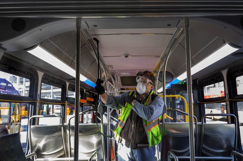 In response to the coronavirus outbreak, Metro says its crews spray all bus handrails, seats, windows and other high-touch areas each night with a sanitizing solution that kills viruses. The spraying replaced bleach-soaked cloths that Metro had been using.