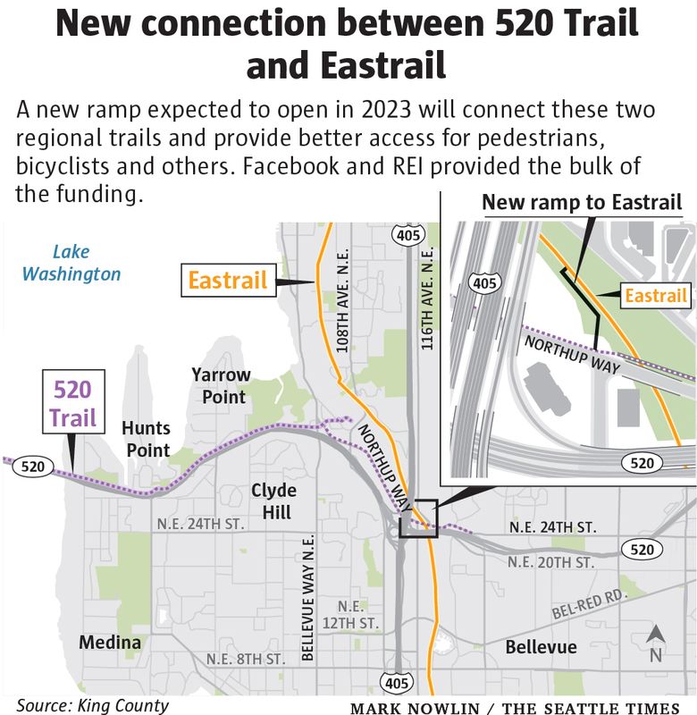 People walking or biking along the Highway 520 Trail could cross directly onto the Eastrail trail via a new connection expected to be approved Tuesday, linking two major trails that serve Seattle and the Eastside.