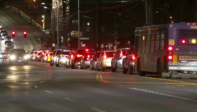 In Seattle’s latest move to encourage transit instead of downtown driving, a general-traffic lane on busy Denny Way will be replaced by a bus lane, so the gridlocked Route 8 can bypass cars that are lined up to reach Interstate 5.