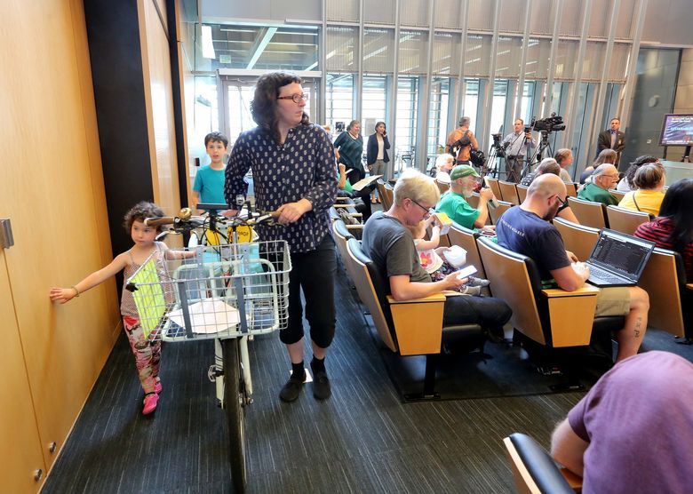 They urged City Council members to create protected bike lanes downtown and pursue a more ambitious plan for biking improvements, noting that they had thrown their support behind the mayor’s $930 million Move Seattle levy.