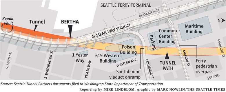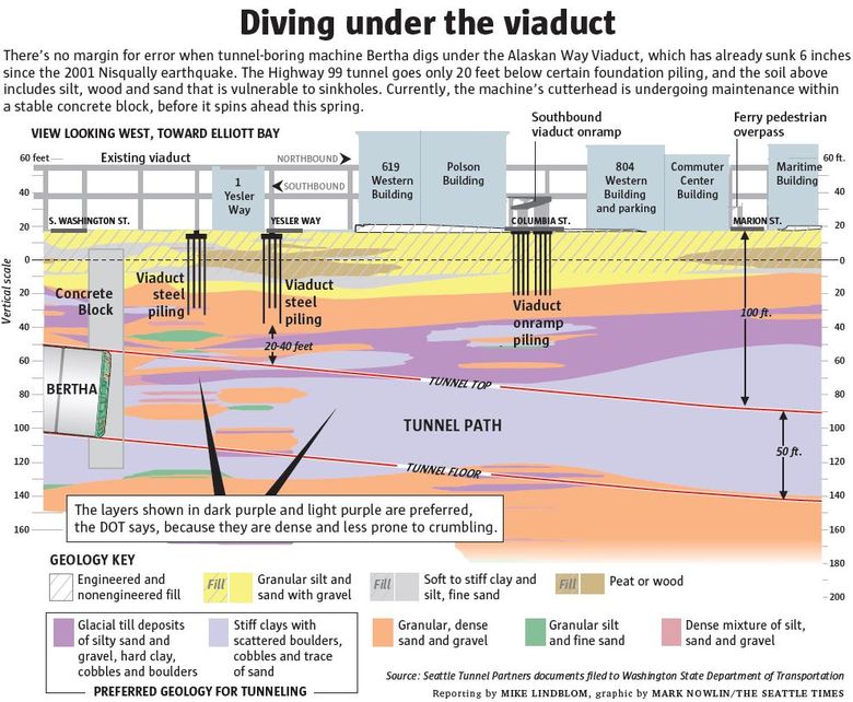 Sinkholes are a common risk in tunnel construction and especially worrisome on this project, because the 57-foot-diameter tunnel will run close to downtown buildings and the Alaskan Way Viaduct, which the tunnel is set to replace, perhaps by spring 2018.